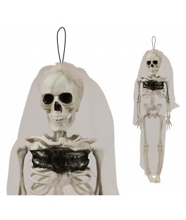 Suspension marié squelette 43cmSuspension de marié squelette, décor macabre parfait pour Halloween. Facile à raccrocher, effet garantie dans le noir.
