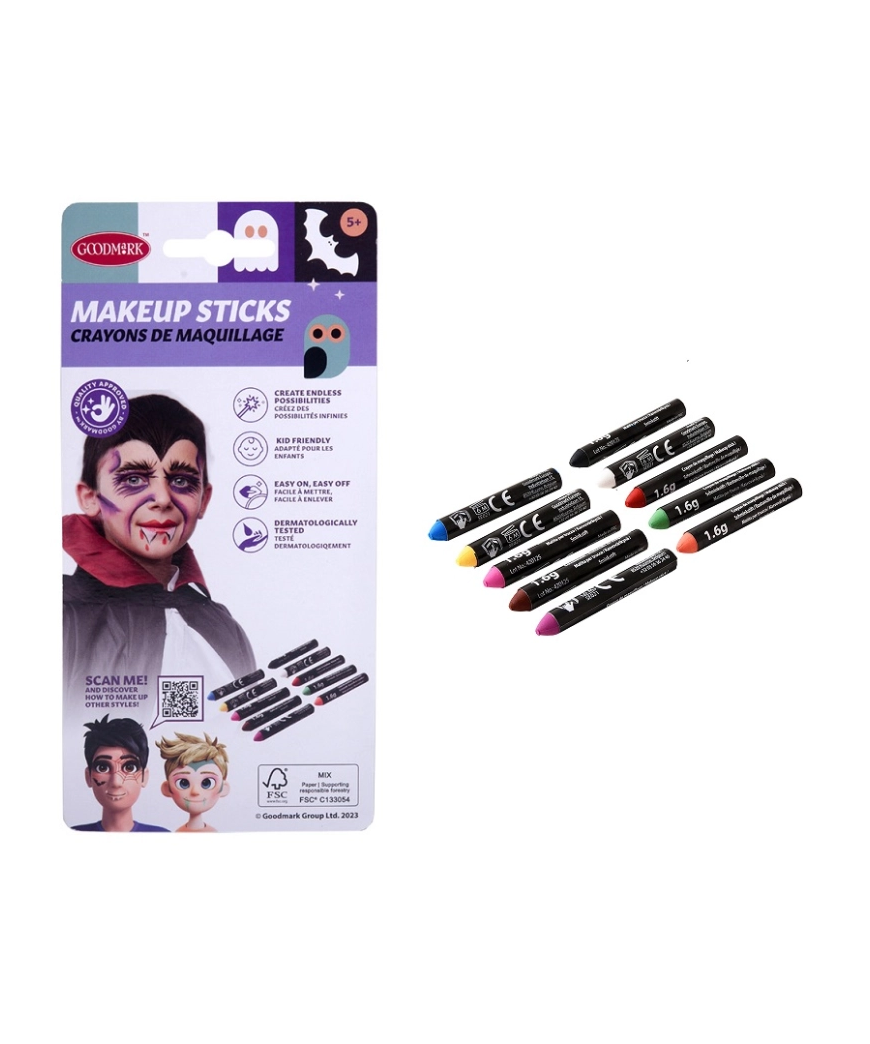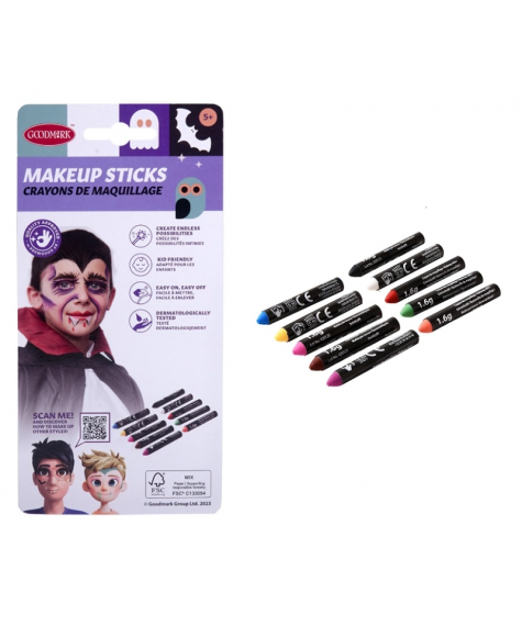 Crayons de maquillage multicolore contenant distinct différentes. Idéal pour les maquillage créatif, festif ou d'Halloween. Application douce et homogène pour un résultat net et coloré.