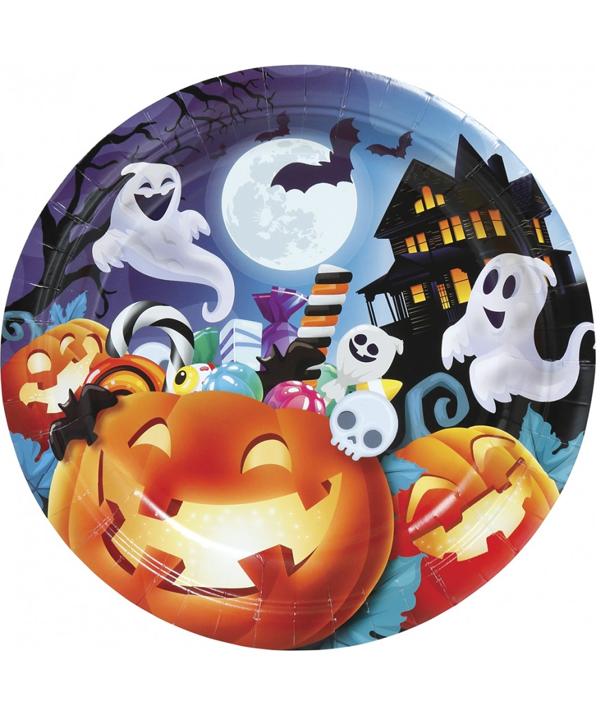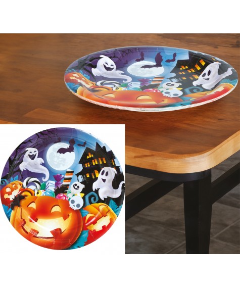 Assiette citrouille de 23cm, festive et pratique pour Halloween. Parfait pour servir bonbons, gâteaux ou amuse-bouches.