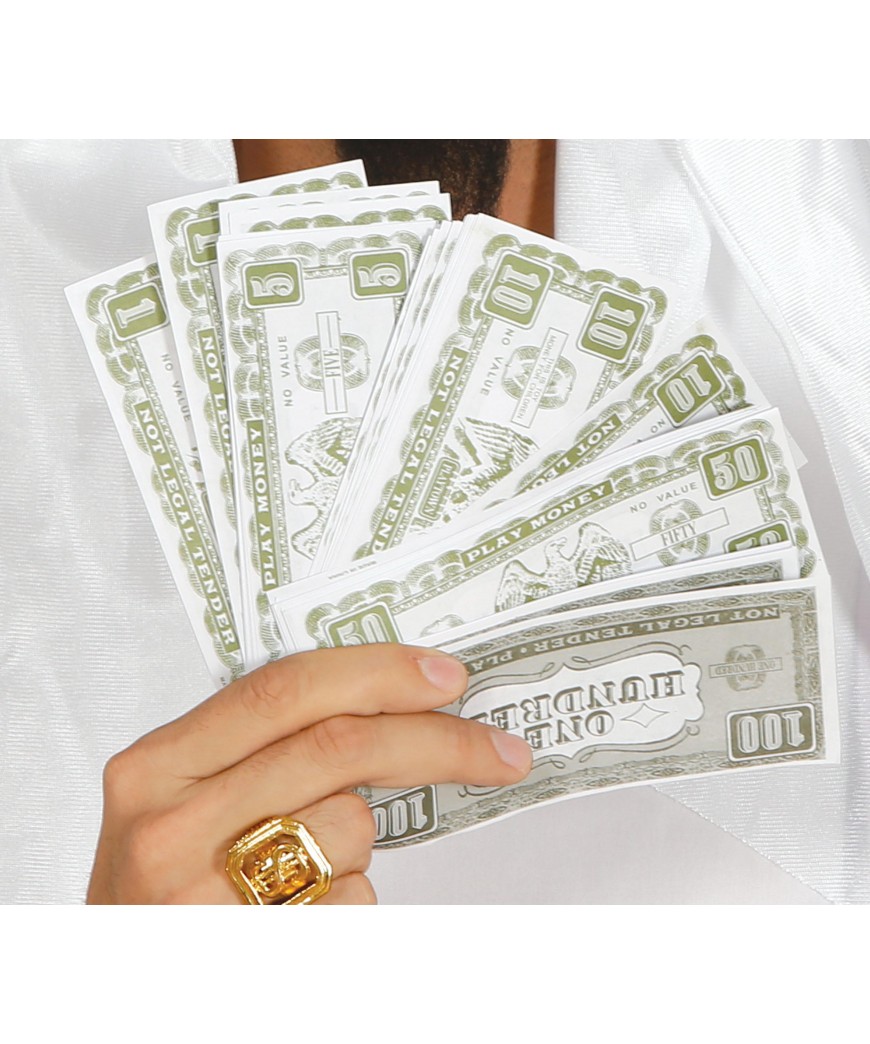 Faites pleuvoir les billets ! Cette liasse factice de 75 billets apportera une touche et réaliste à vos déguisements de gangster ou joueur.