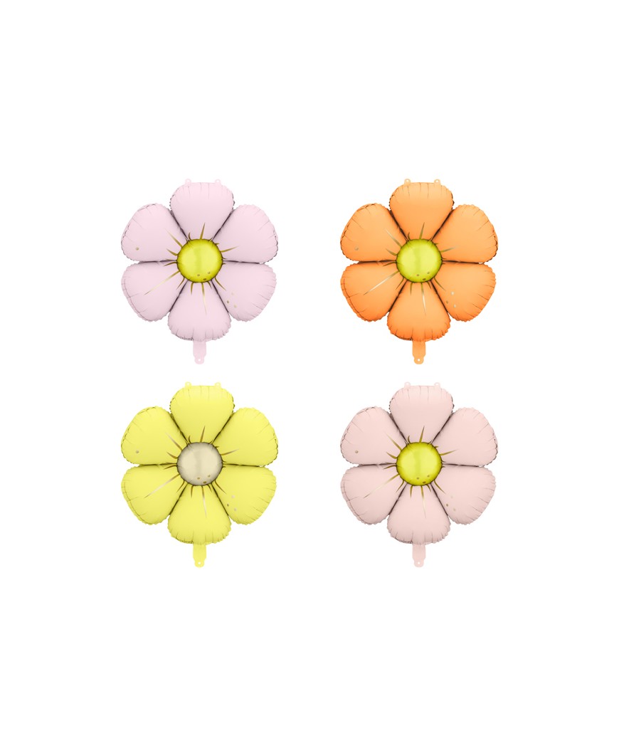 Lot de 4 ballons marguerites de 65cm, gonflable uniquement à l'air. Idéal pour les anniversaires, mariages et baby shower.