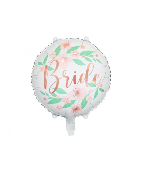 Ballon alu rond avec l'inscription " bride " et décor floral, 45 cm de diamètre. Parfait pour une enterrement de vie de jeune fille (EVJF). Gonflable à l'air ou à l'hélium.