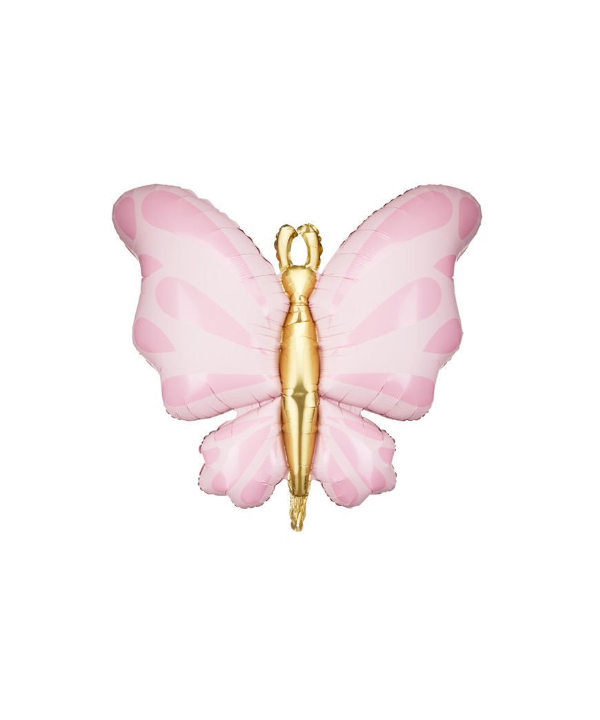 Ballon alu en forme de papillon rose, dimension 69*69cm. Il se gonfle à l'hélium et apporte une touche élégante à vos fêtes, anniversaires, mariages ou baby showers.