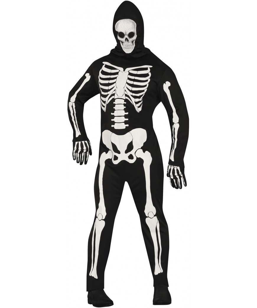 Costume complet de squelette pour adulte. Idéal pour Halloween ou une soirée à thème, il reproduit fidèlement l'apparence d'un squelette grâce à ses impressions détaillées . Confortable et facile à porter, ils offrent rendu effrayant et amusant à la fois.