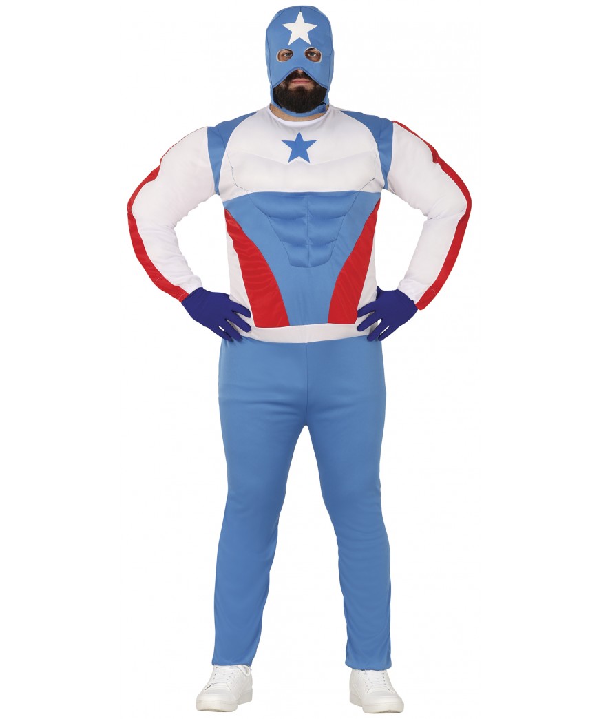 Super-héros costaud en vue. Ce costume musclé vous donnera une allure puissante est drôle pour vos soirées déguisées.