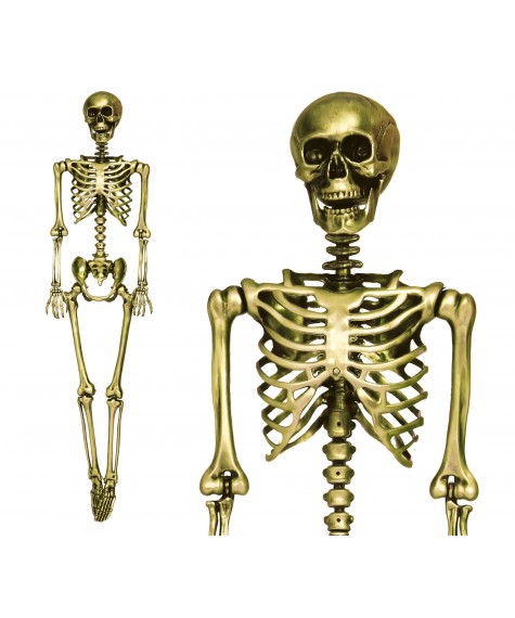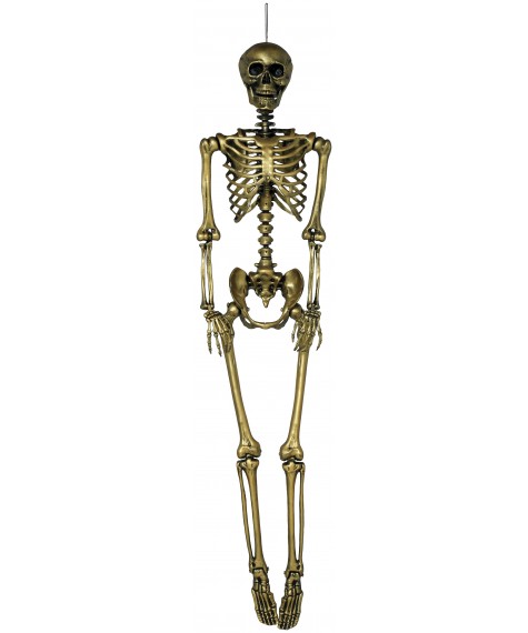 Squelette décoratif doré de 150 cm. Parfait pour ajouter une touche chique et effrayante à votre décoration d'Halloween. Articulé, il peut être suspendu ou assis. Matériau léger et résistant.