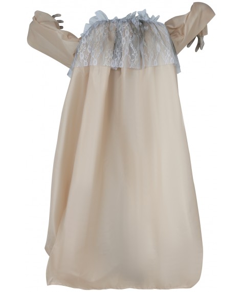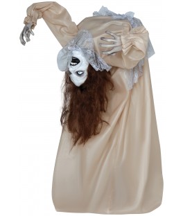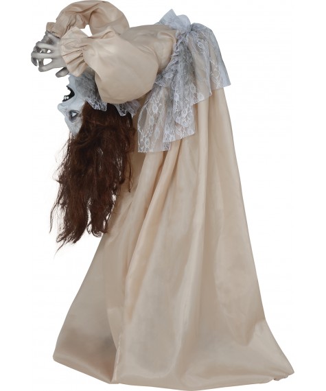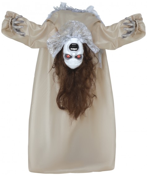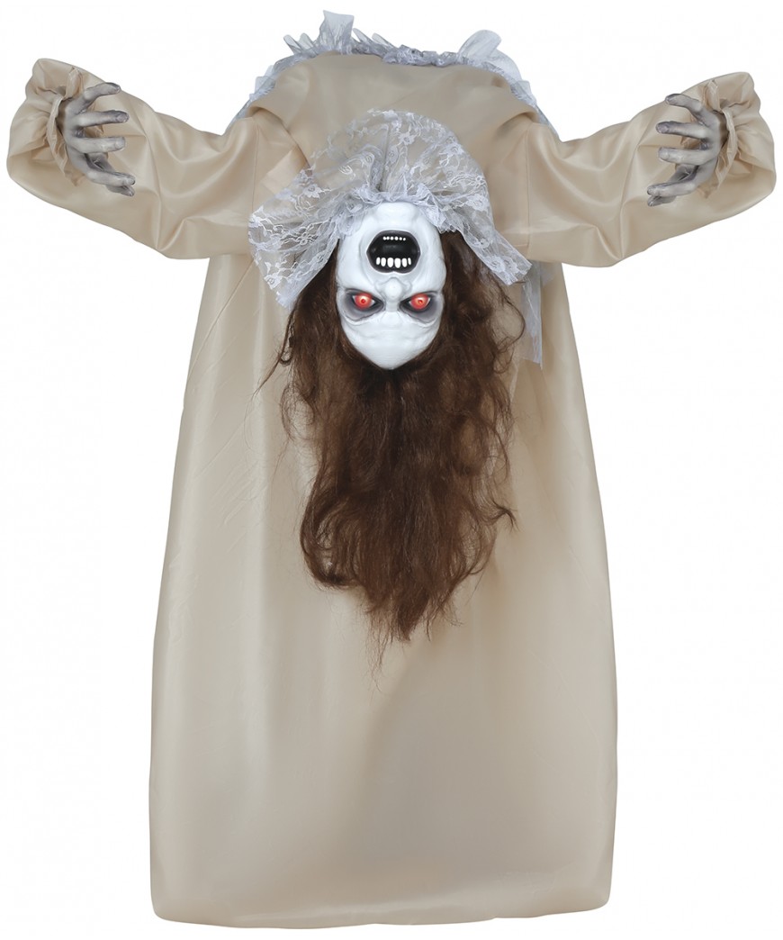 Avec ses cris, ses mouvements et ses yeux lumineux, elle glace le sang en un instant. une décoration digne d'un film d'horreur.