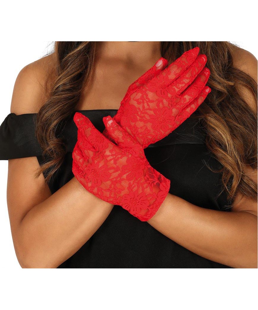 Gants en dentelle rouge, chic pour tenues de soirées ou déguisements. Doux et extensible pour un maintien parfait.