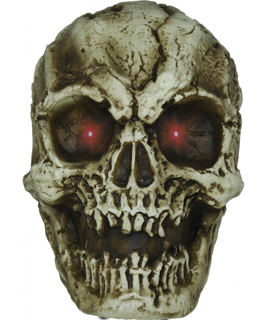 Un crâne monumental avec effets spéciaux, idéal pour créer une ambiance macabre à Halloween.